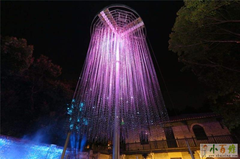 水晶烟花装置高14米,地台占地直径达10米,采用立体LED技术,闪烁的光芒沿着装置慢慢上升,逐渐绽放出灿烂夺目的烟火,小百姓网www.xbaixing.com